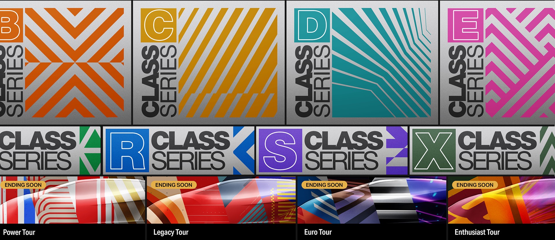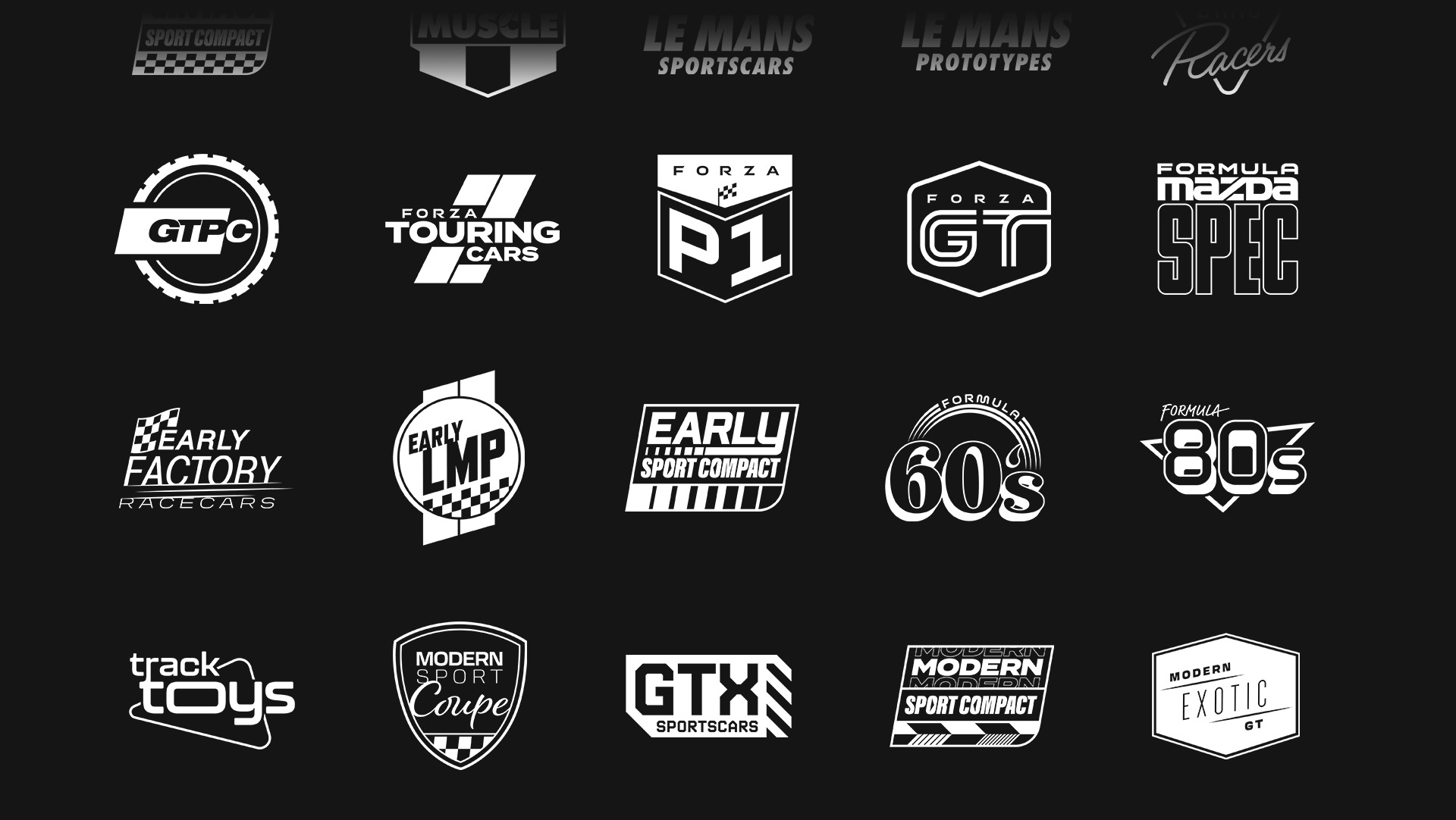 And just when you thought we had covered it all, we’ve got more… So much more. The visual vernacular of Forza Motorsport is incredibly rich with layers of design styling each with their own unique voice. Class series graphics, tour buttons, and many, many logo’s.