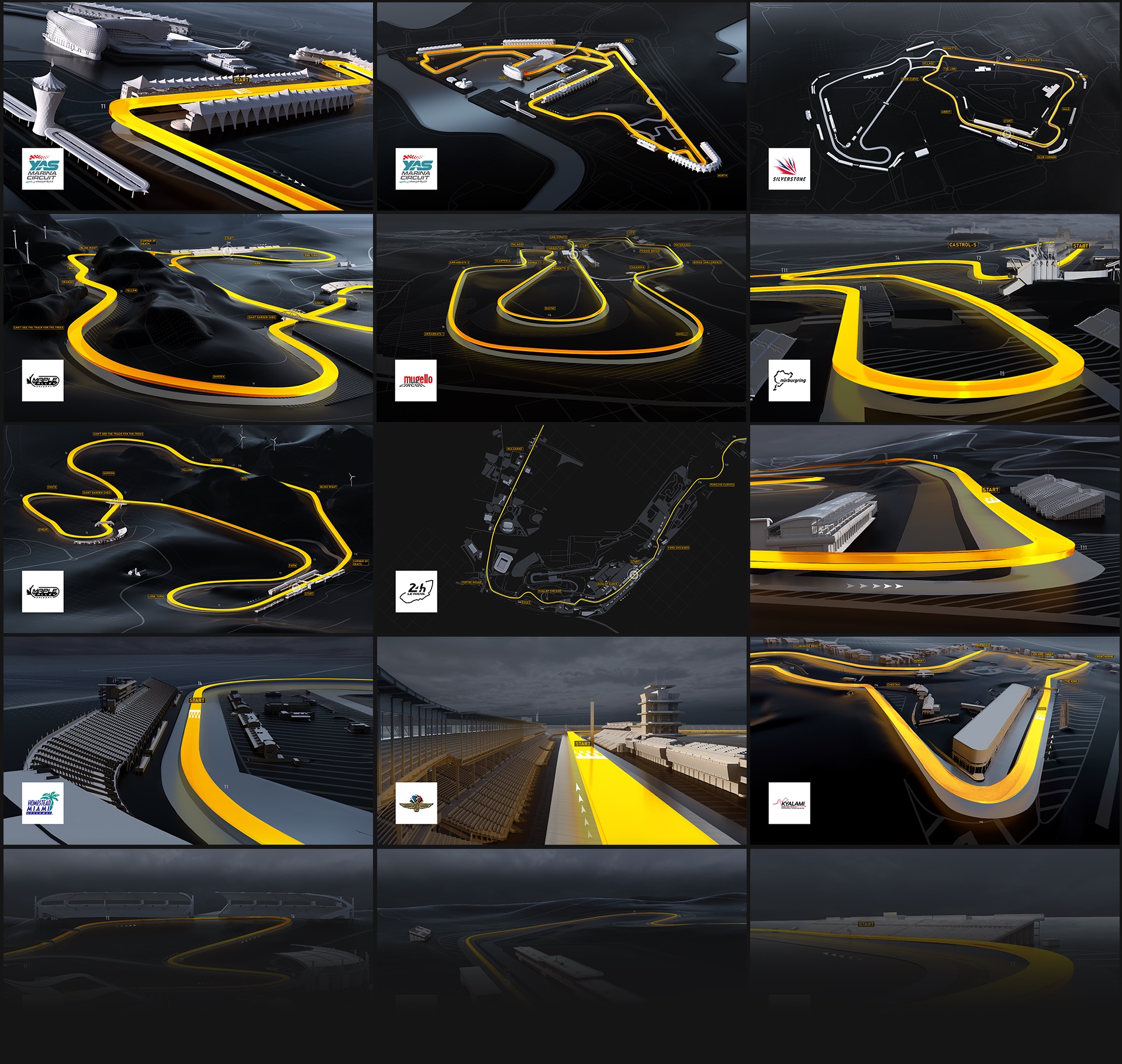 Complimenting the rest of the game’s design language, these graphic maps let the ribbon come forward with a vibrant gold tone matching the menu styling. Each track was taken from the game and rendered into a graphic style bringing all of the focus to the gold ribbon with the backdrop of the graphic buildings and terrain setting the overall stage.