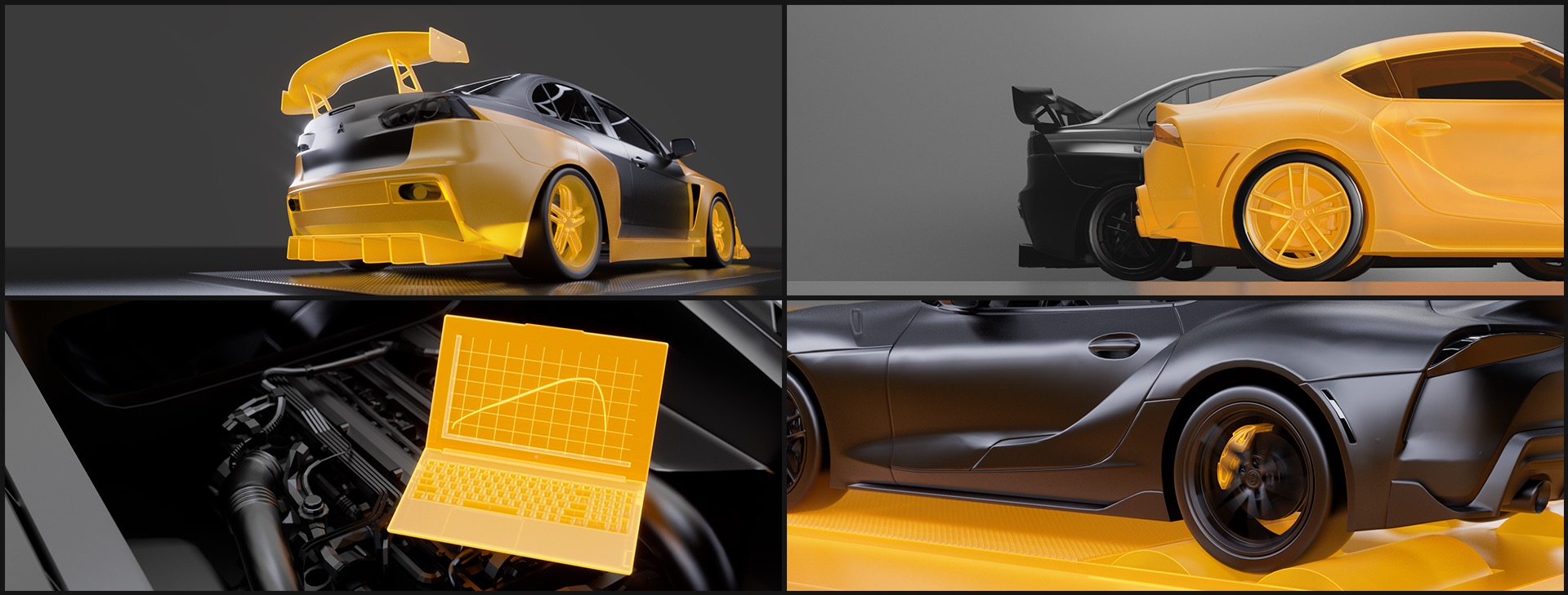 To achieve this, we created each animation specifically tailored to get the best high-contrast reflections possible. We had our own setup to test and find moments where this would play better than others. Making these custom animations work for both the shinny car bodies and on their own gave our design and motion teams plenty to figure out.