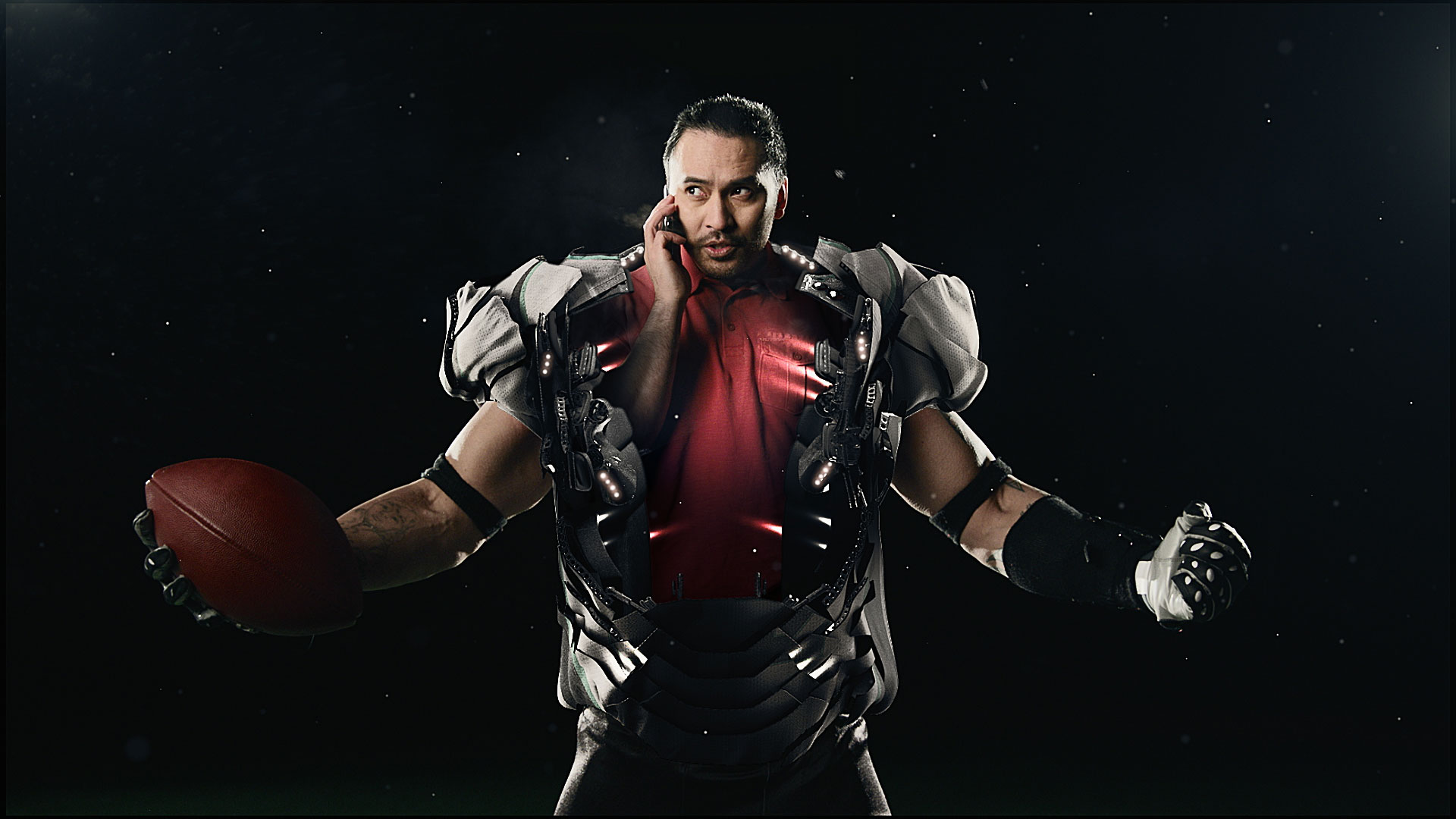 The VFX spot was a fun overnight shoot with bouts of snow and freezing conditions. To create our exo-suits and retain a level of surprise, we simply shot professional football players. When the player starts to come apart like a mechanized robot, the viewer sees a side to a lotto wish-list never really thought of before. Realism be damned!