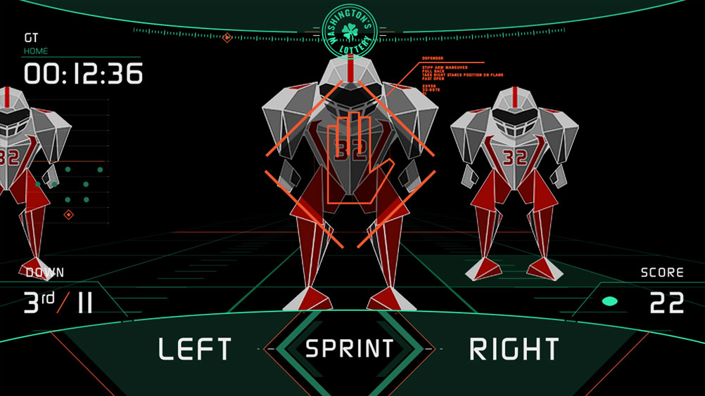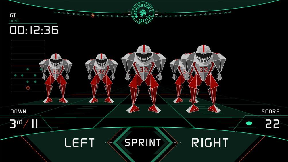 Lotto Football was one such project within a much larger campaign. In football, we created massive football player exo-suits give even the puniest of us an opportunity to level with the heaviest linebacker. I’m featuring it here because it really pushed design and campaign integration to a new level. We built out the typical 30sec spot with alts and a hand full of banners to go along with it. The real interest was in the interactive webGL fame we built in tandem to give people an opportunity to run the football gauntlet in a “runner” type game all souped up to look like a retro throwback.