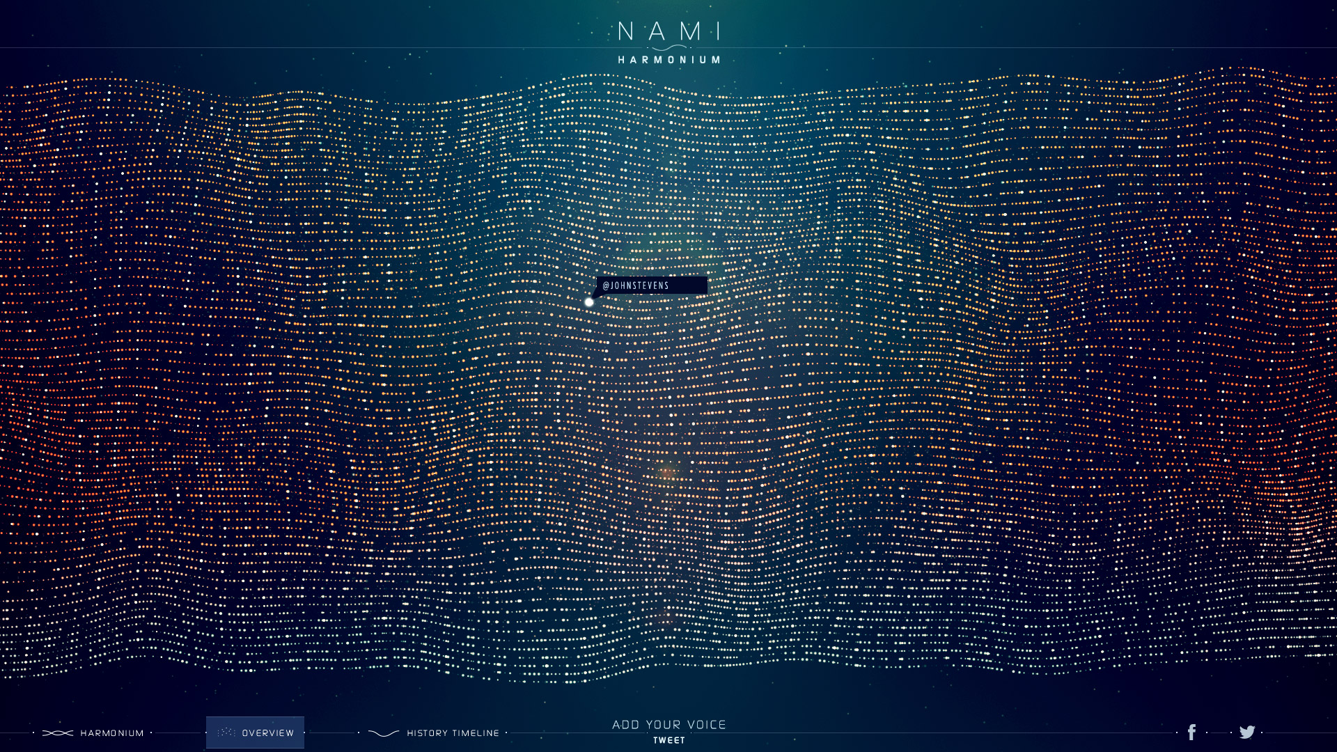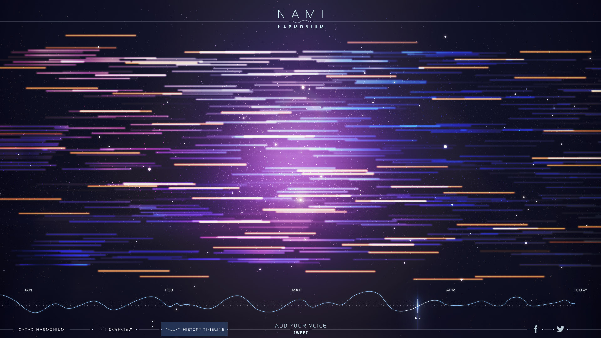 Going even further, we proposed a benefit concert for NAMI one-year after the Harmonium has been active where a guest composer is invited to create an original score derived from an entire year of New York’s sentiment. And of course, behind the orchestra we play the tapestry reacting in real-time to the original score. A fitting end to an uplifting and musically driven endeavor.
