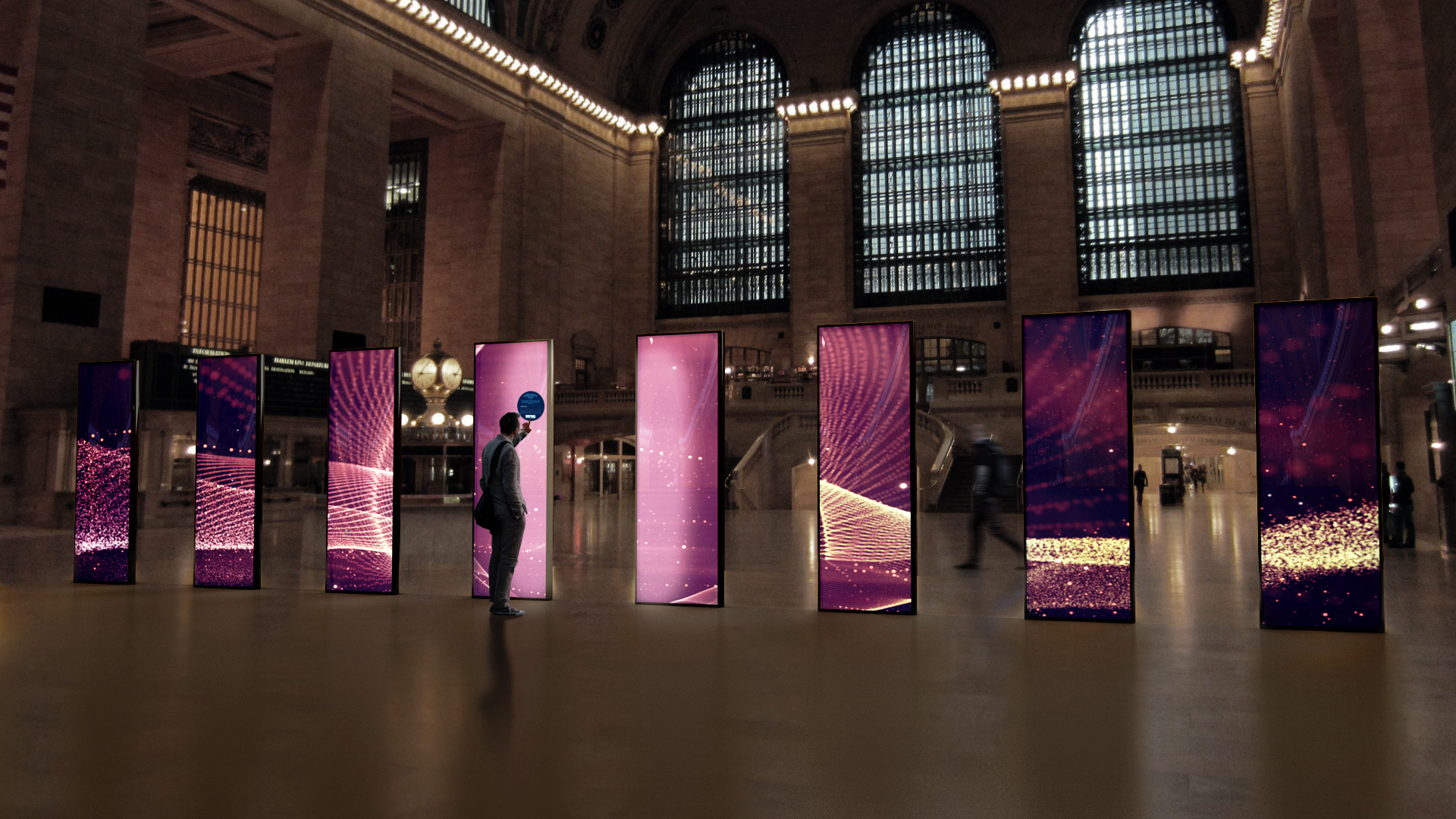 But of course, not content with just doing the ask, I set out to take this whole thing a few steps further. Why not build a physical installation of the NAMI site in a public space with high traffic volumes? The proposal is a number of monolithic towers each housing an LED screen and simply proximity sensor. Walkers are invited to travel through the pillars as the Harmonium displays the current site in real-time. As a user walks between, the tapestry reacts with a subtle shift.
